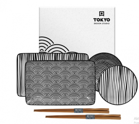 Ceramiczny zestaw do spożywania sushi z kolekcji Nippon Black w kolorze biało czarnym dla dwóch osób, to znakomita propozycja dla wszystkich, którzy chcą, aby w ich domu zagościł azjatycki klimat. Oryginalne naczynia uświetnią każdy posiłek.